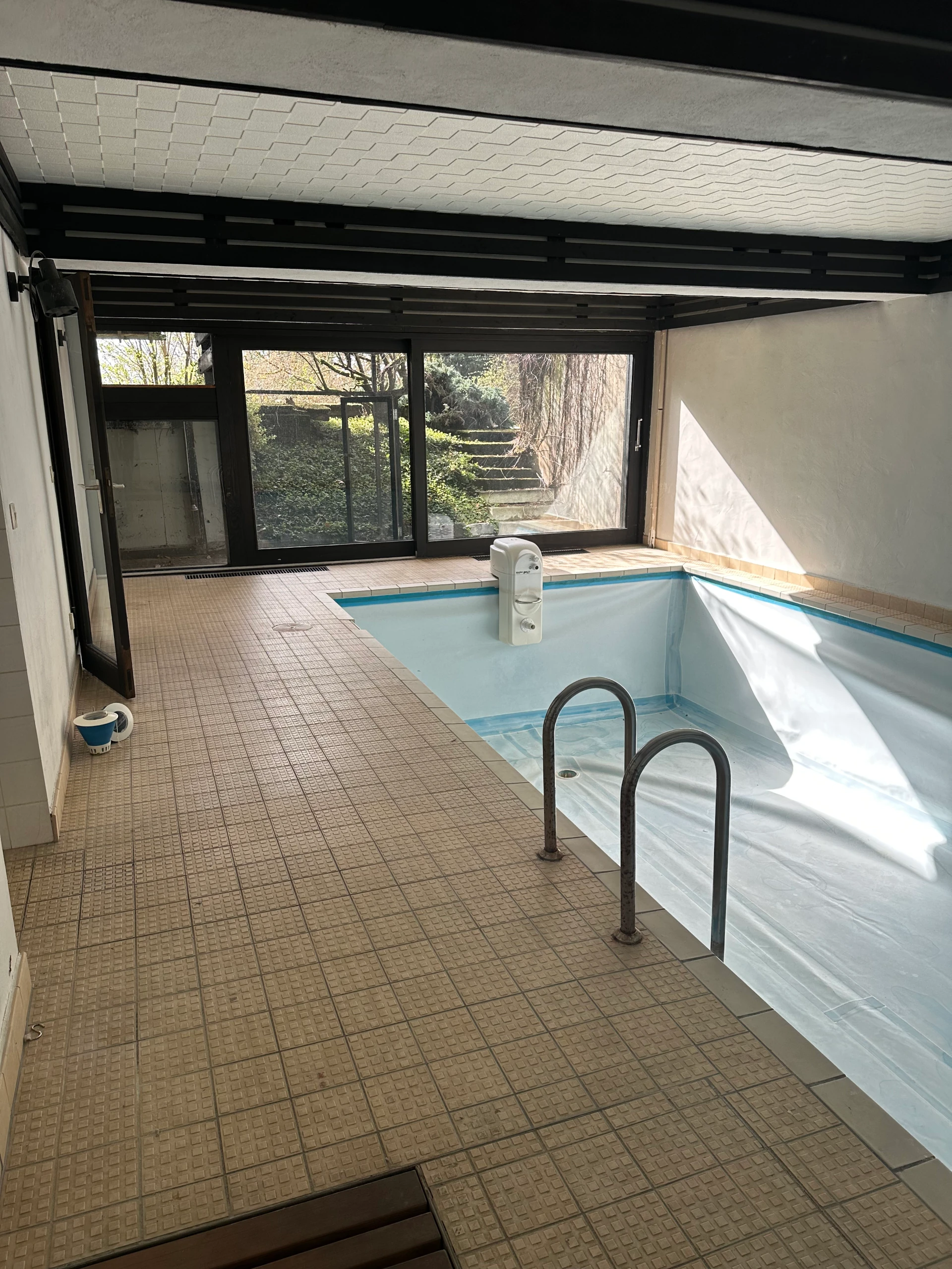 Steinzeug-, Teppich- und Parkettböden Holzfenster mit Isolierverglasung Innen-Schwimmbad (8 × 4 m)